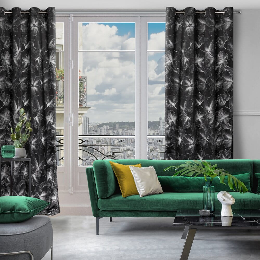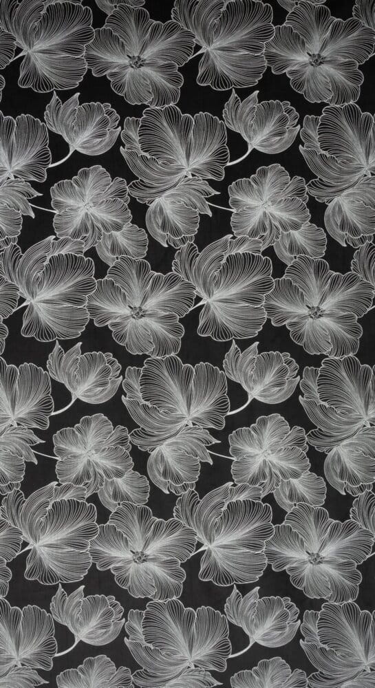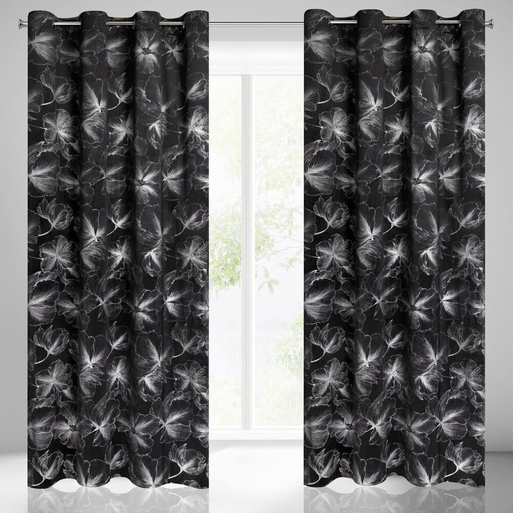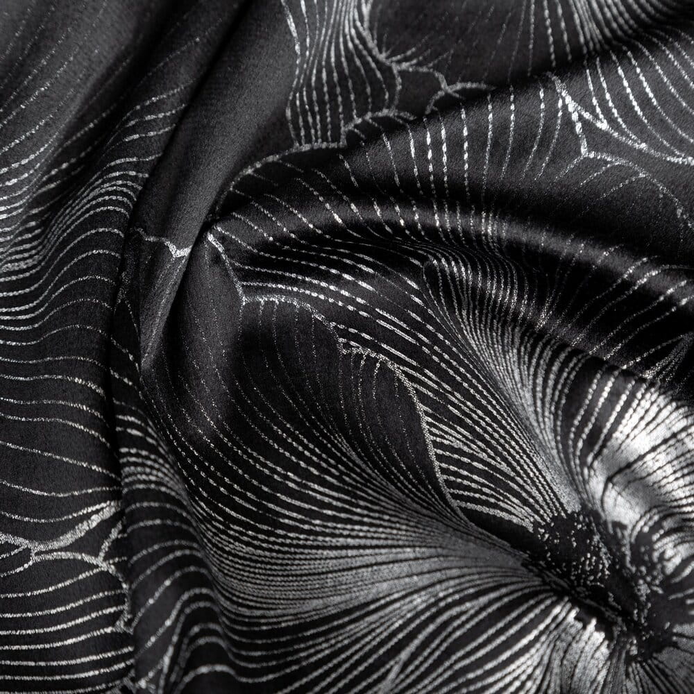 Zasłona welwetowa ze srebrnym nadrukiem szerokość: 140 cm, długość: 250 cm, kolor: czarny, Gramatura: 200 GSM, Skład: 100% poliester