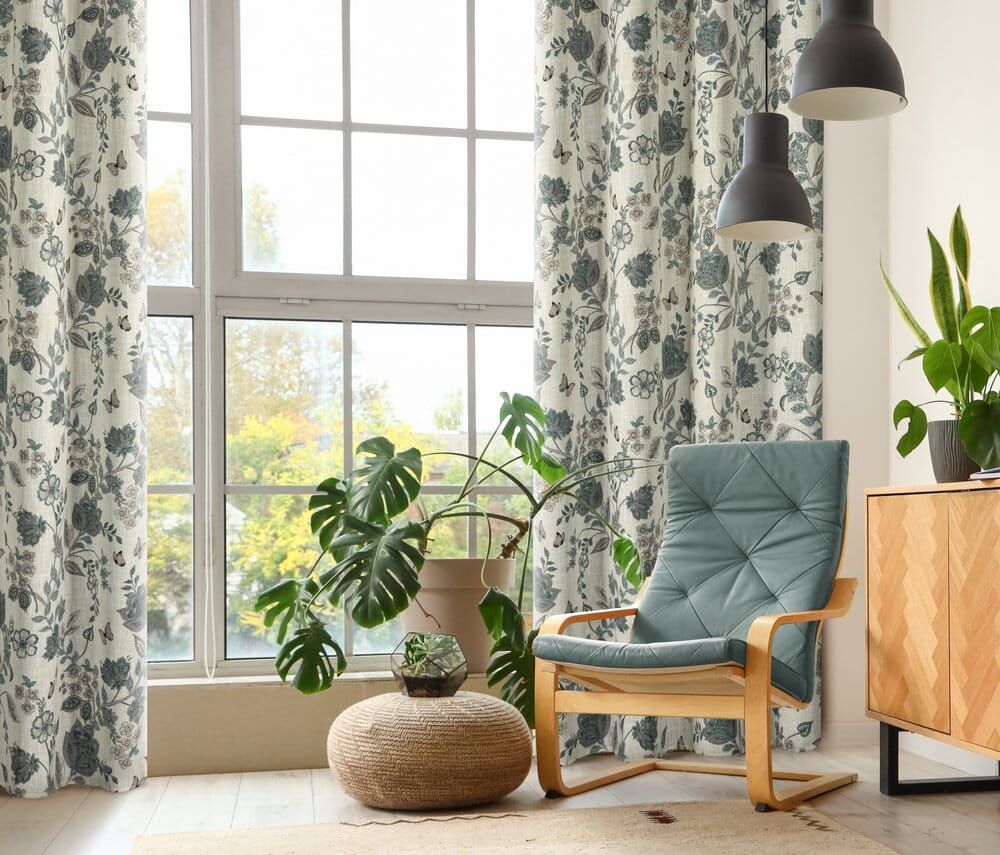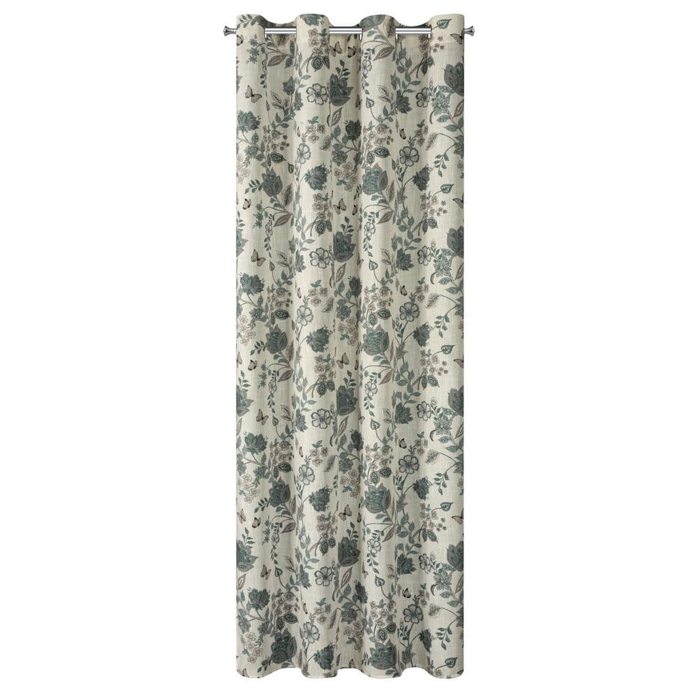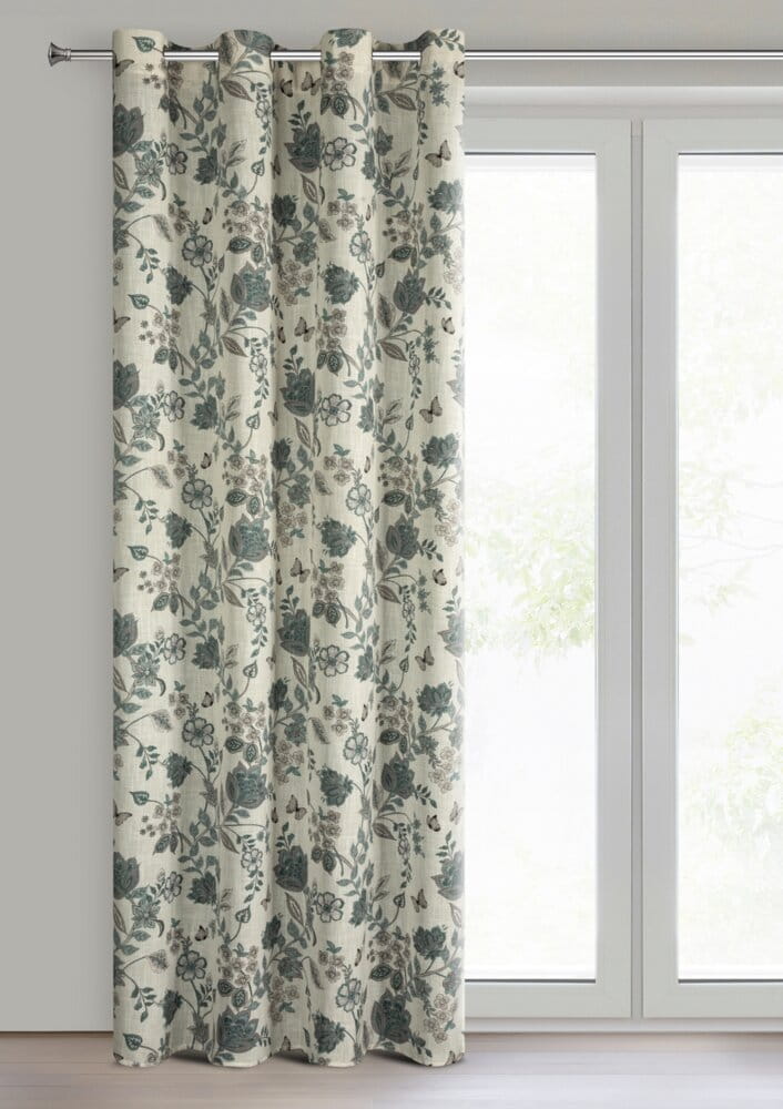 Zasłona gotowa z nadrukiem z dodatkiem lnu szerokość: 140 cm, długość: 250 cm, kolor: naturalny, Gramatura: 210 GSM, Skład: 10% len, 90% poliester
