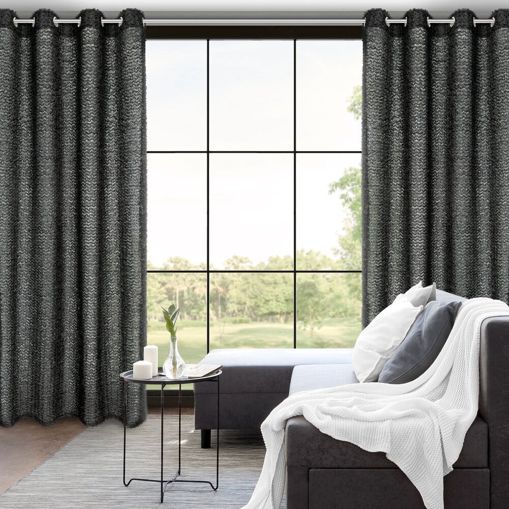 Zasłona gotowa z aplikacją szerokość: 135 cm, długość: 250 cm, kolor: czarny, Gramatura: 205 GSM, Skład: 100% poliester