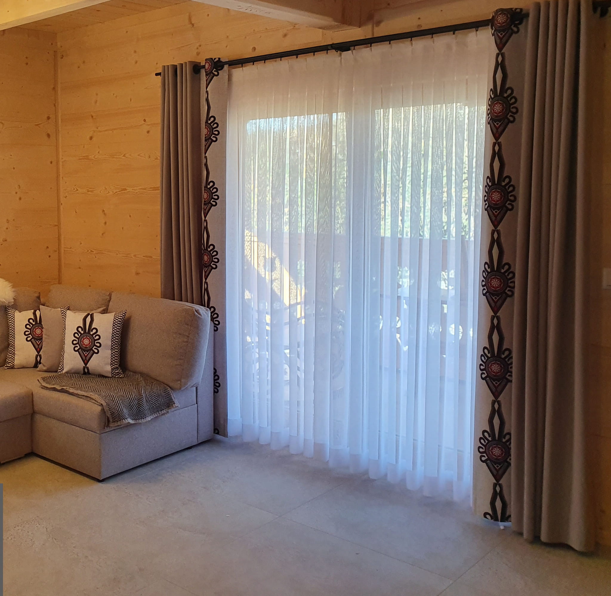 ✔ zasłona do salonu w stylu góralskim