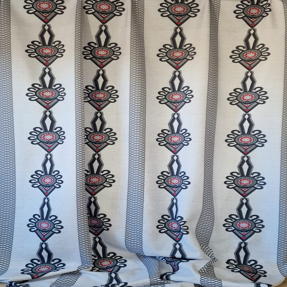 Jeśli kochasz styl góralski, regionalne motywy i mocny akcent we wnętrzu – ta tkanina zasłonowa z podhalańskim wzorem parzenicy jest dokładnie tym, czego szukasz.