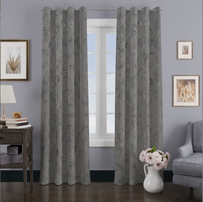 Marmurkowy wzór w przecieranym stylu sprawia, że zasłona świetnie komponuje się zarówno w aranżacjach glamour, nowoczesnych, jak i loftowych. To nie tylko dekoracja, ale również praktyczne rozwiązanie – tkanina skutecznie chroni przed słońcem, zapewnia prywatność i ociepla przestrzeń.