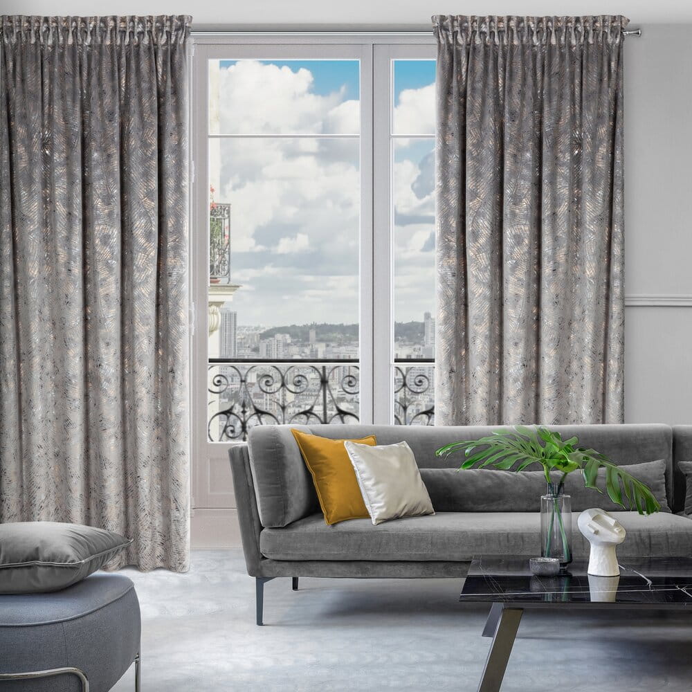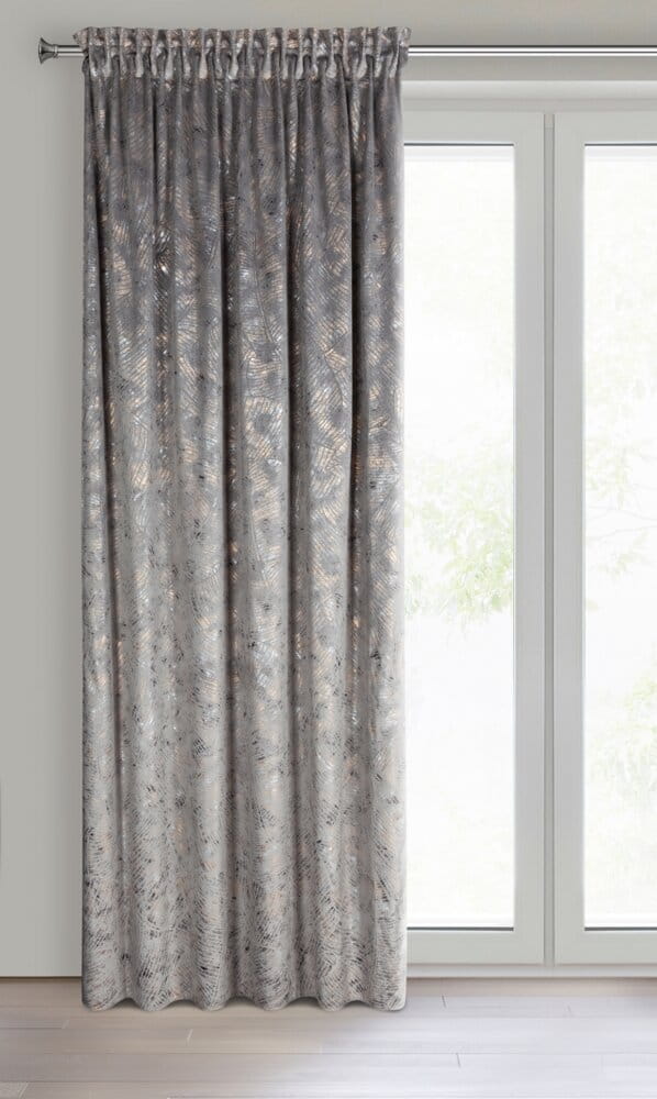 Zasłona welwetowa z cieniowanym błyszczącym nadrukiem szerokość: 135 cm, długość: 270 cm, kolor: stalowy, Gramatura: 200 GSM, Skład: 100% poliester