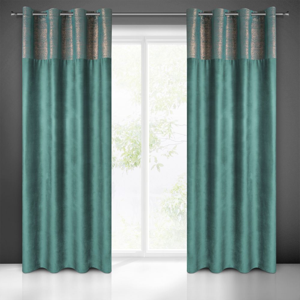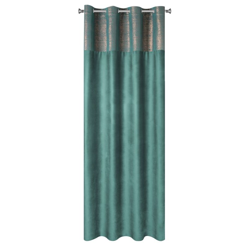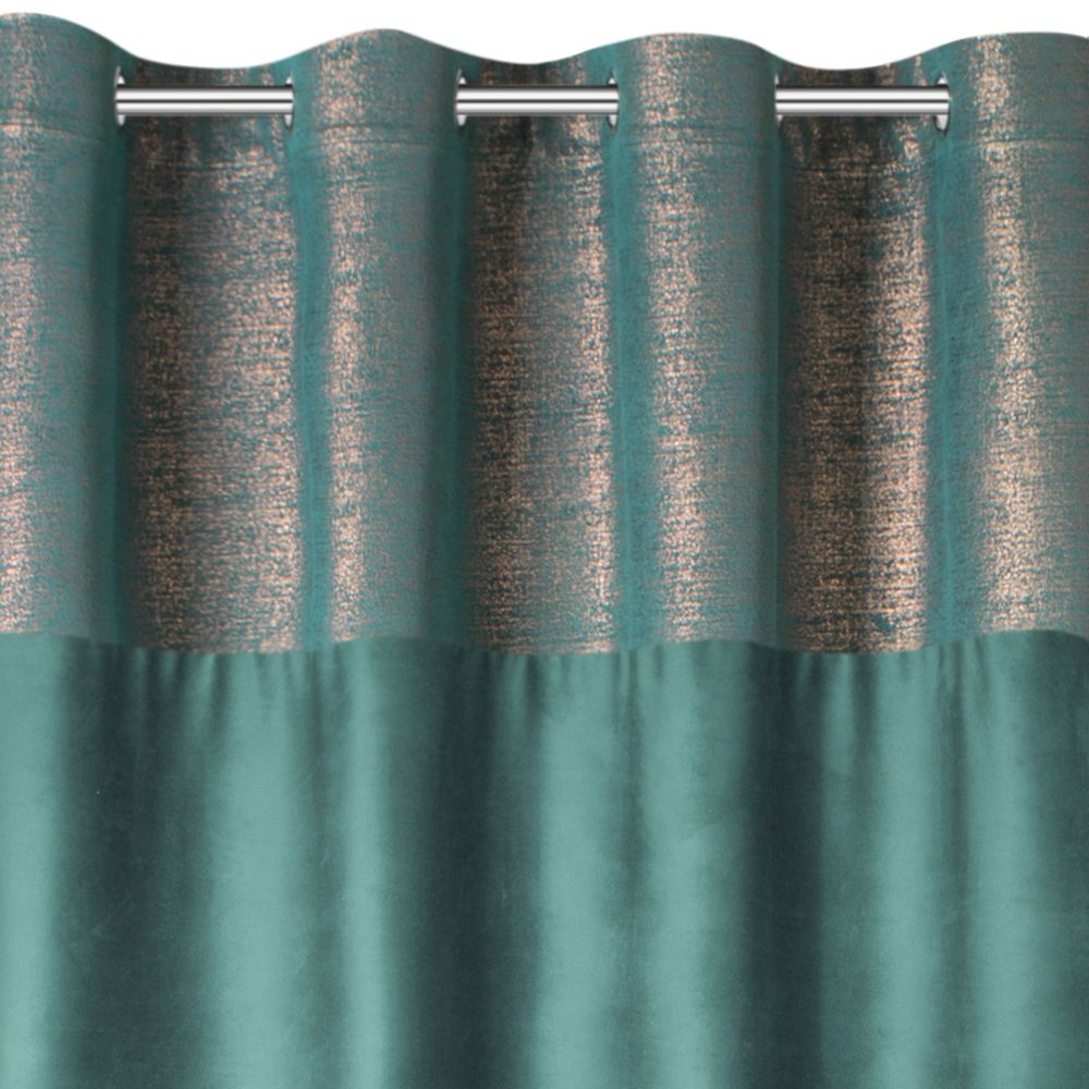Zasłona welwetowa z miedzianym nadrukiem szerokość: 140 cm, długość: 250 cm, kolor: ciemnoturkusowy, Gramatura: 200 GSM, Skład: 100%poliester