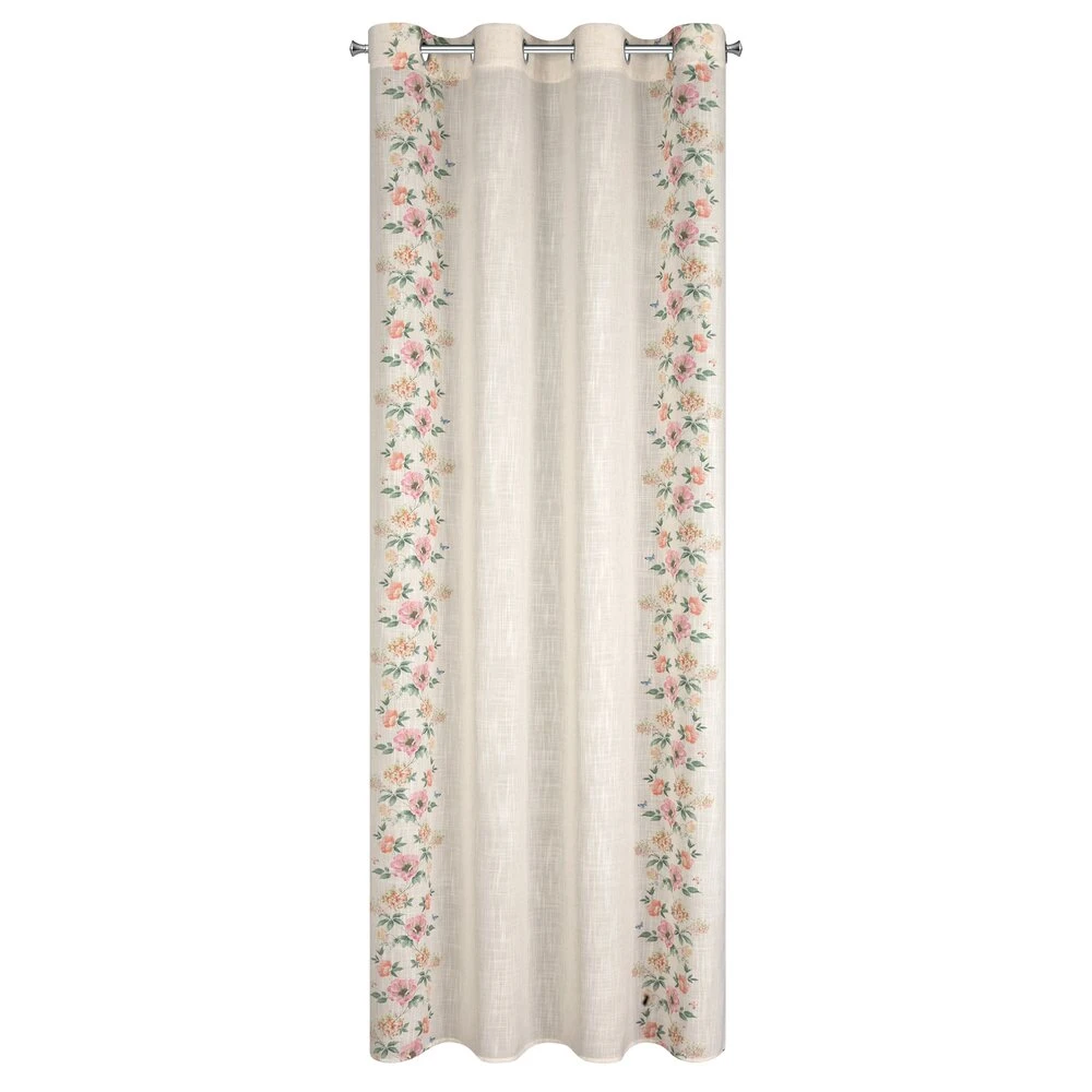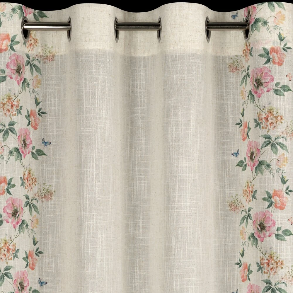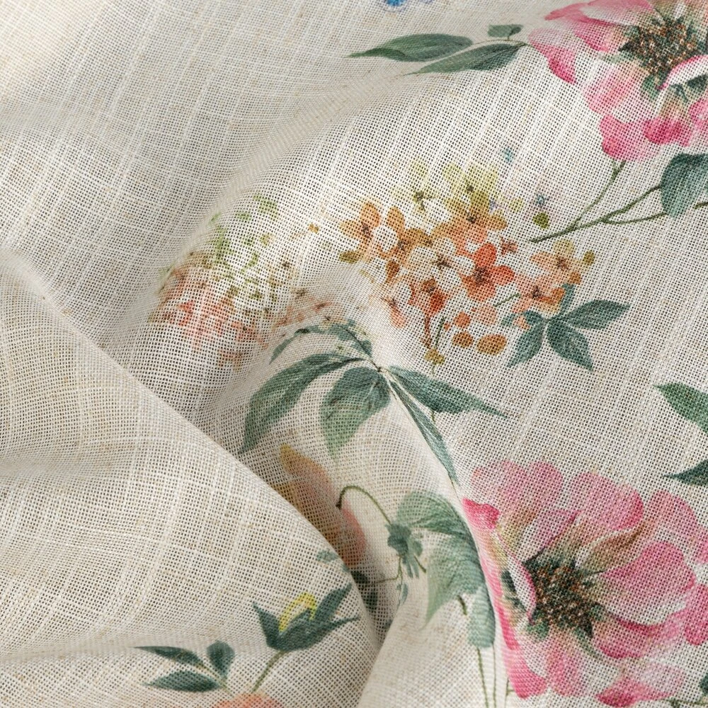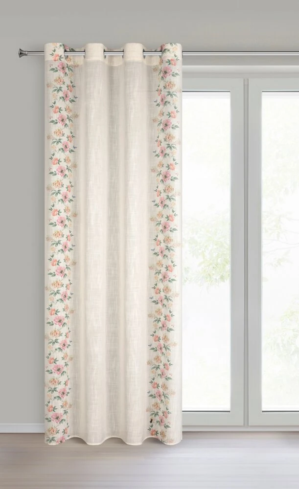 Zasłona gotowa w stylu eko z domieszką lnu z nadrukiem w kwiaty szerokość: 140 cm, długość: 250 cm, kolor: naturalny, Gramatura: 145 GSM, Skład: 5% len, 95% poliester