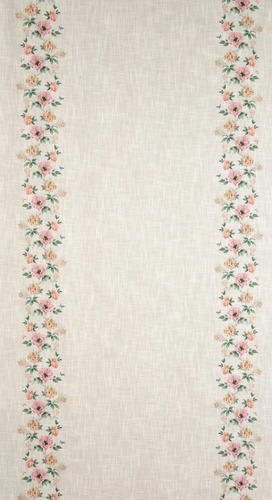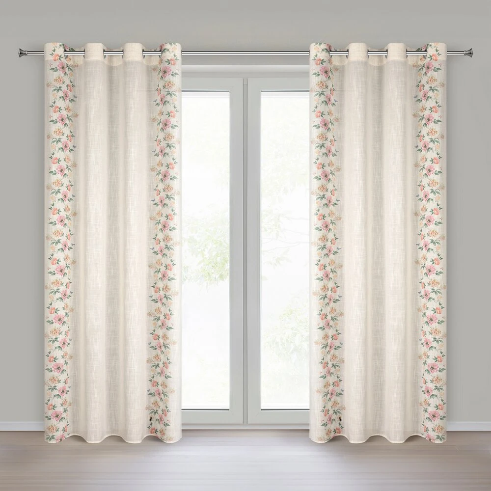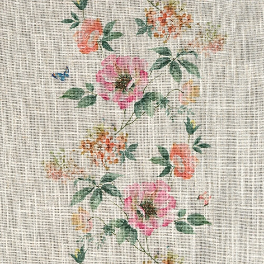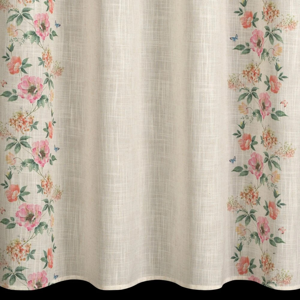 Zasłona gotowa w stylu eko z domieszką lnu z nadrukiem w kwiaty szerokość: 140 cm, długość: 250 cm, kolor: naturalny, Gramatura: 145 GSM, Skład: 5% len, 95% poliester