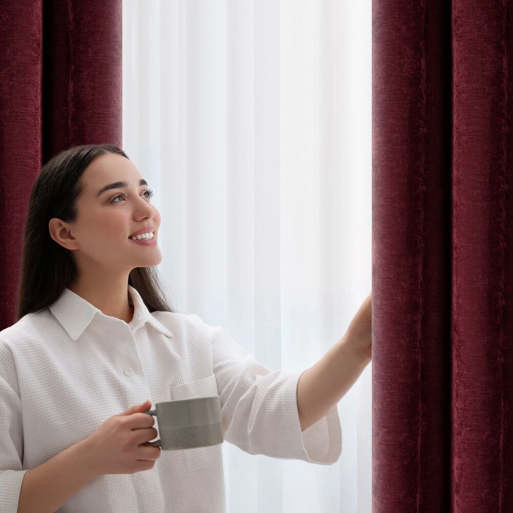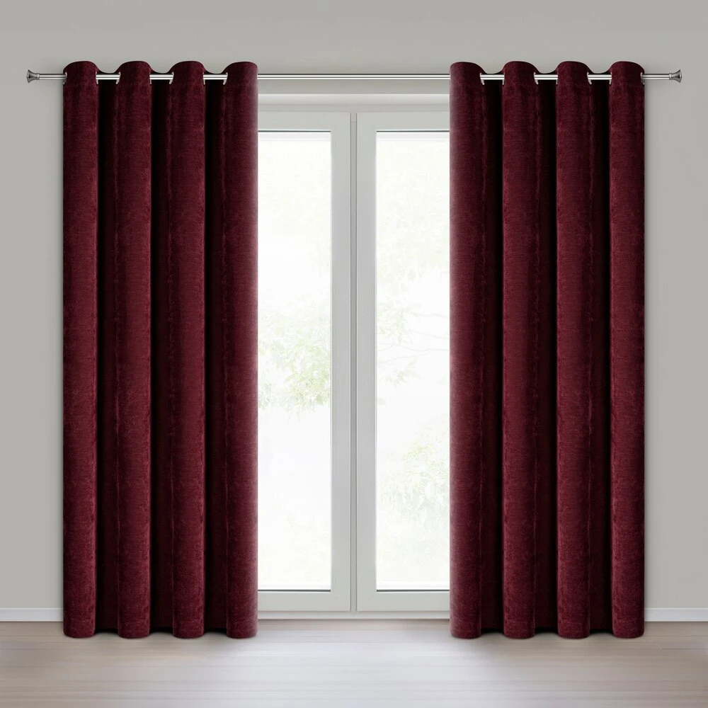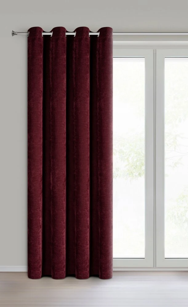 Zasłona gotowa o szenilowej strukturze szerokość: 140 cm, długość: 250 cm, kolor: bordowy, Gramatura: 160 GSM, Skład: 100% poliester
