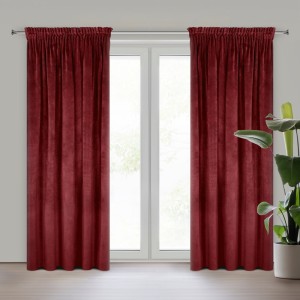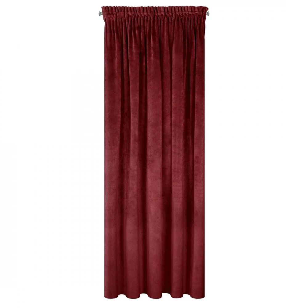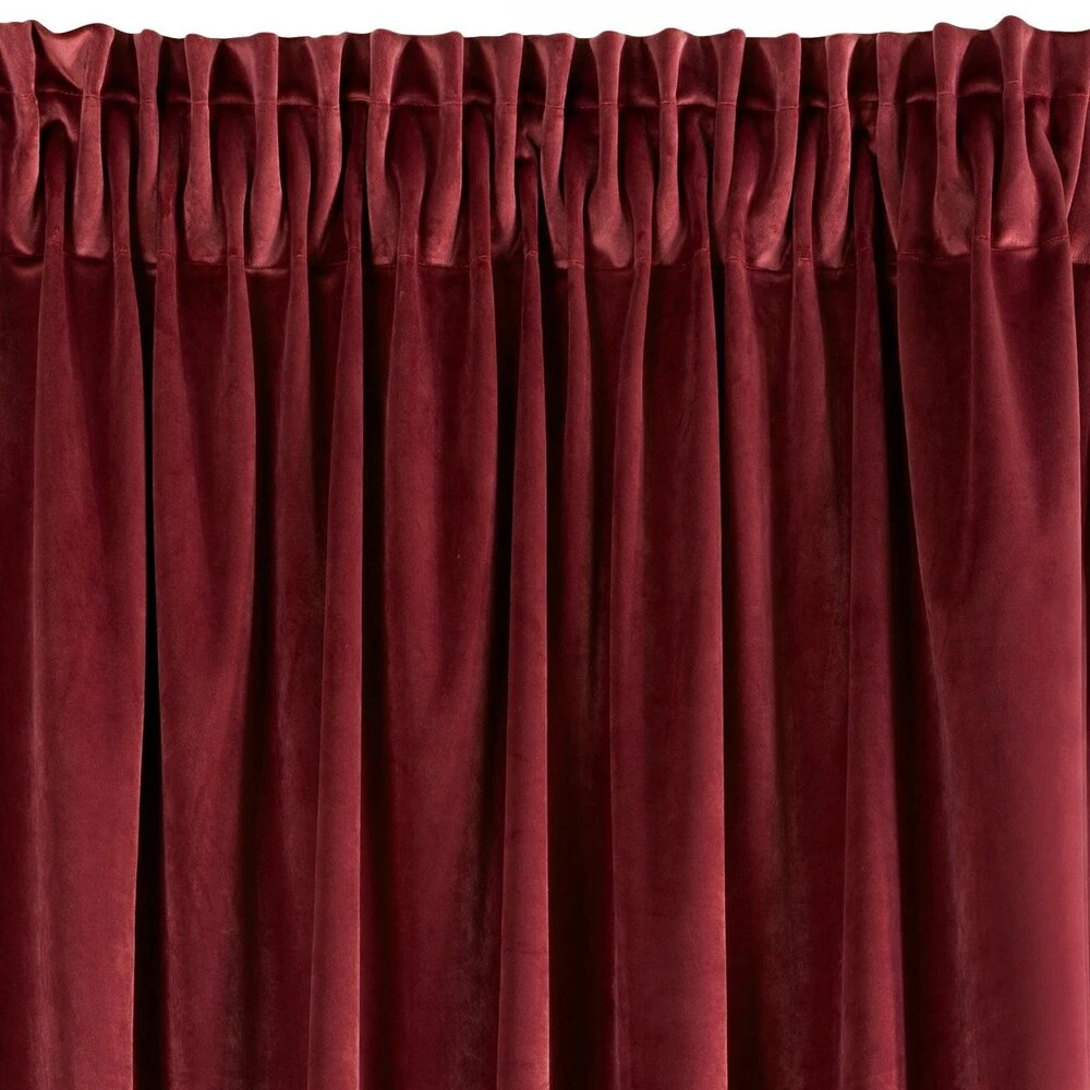 Gładka, jednokolorowa zasłona z miękkiego welwetu o charakterystycznym dla aksamitu połysku. Taśma marszcząca zawiera tunel do upięć na karniszu drążkowym. szerokość: 140 cm, długość: 270 cm, kolor: ciemnobordowy, Gramatura: 290 GSM, Skład: 100% poliester