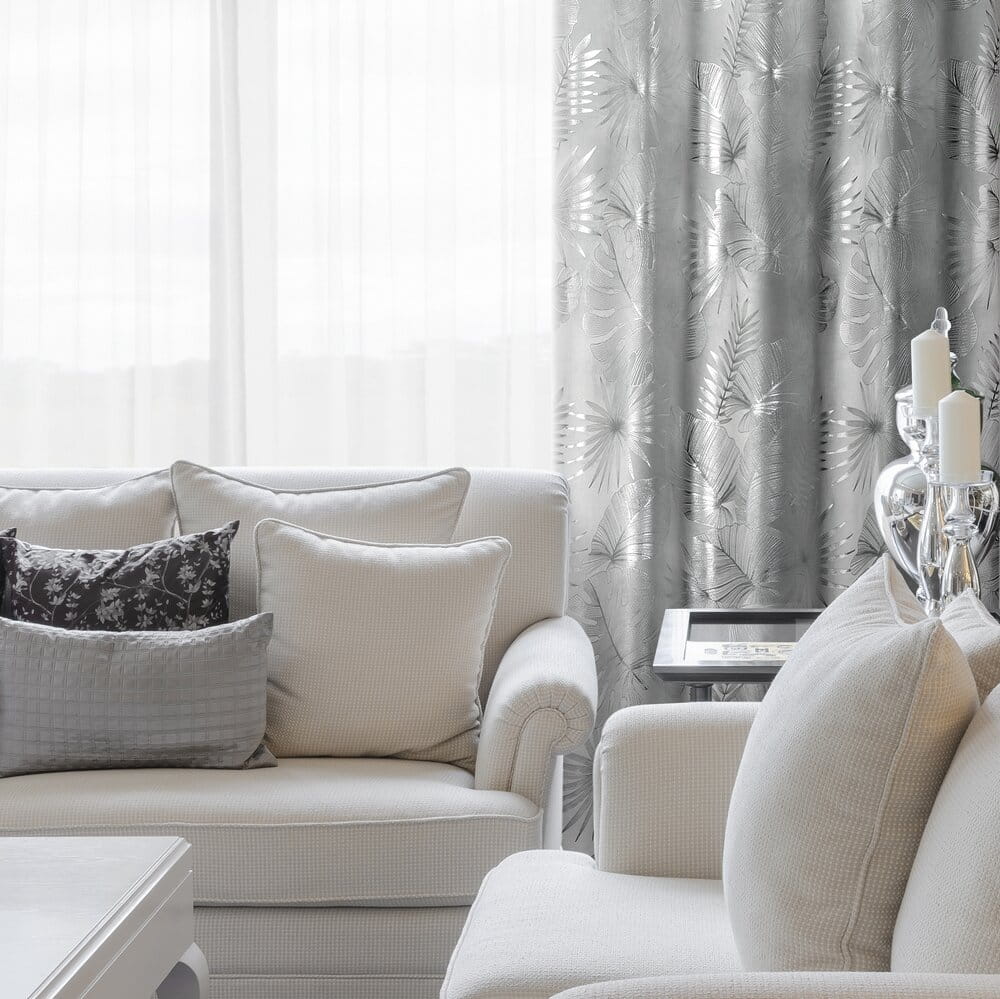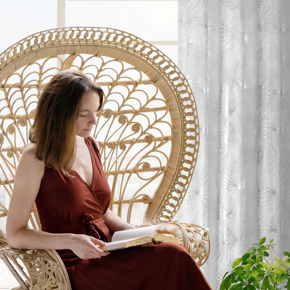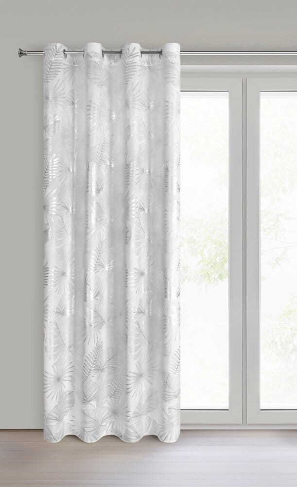 Zasłona gotowa welwetowa z błyszczącym nadrukiem szerokość: 140 cm, długość: 250 cm, kolor: biały, Gramatura: 200 GSM, Skład: 100% poliester