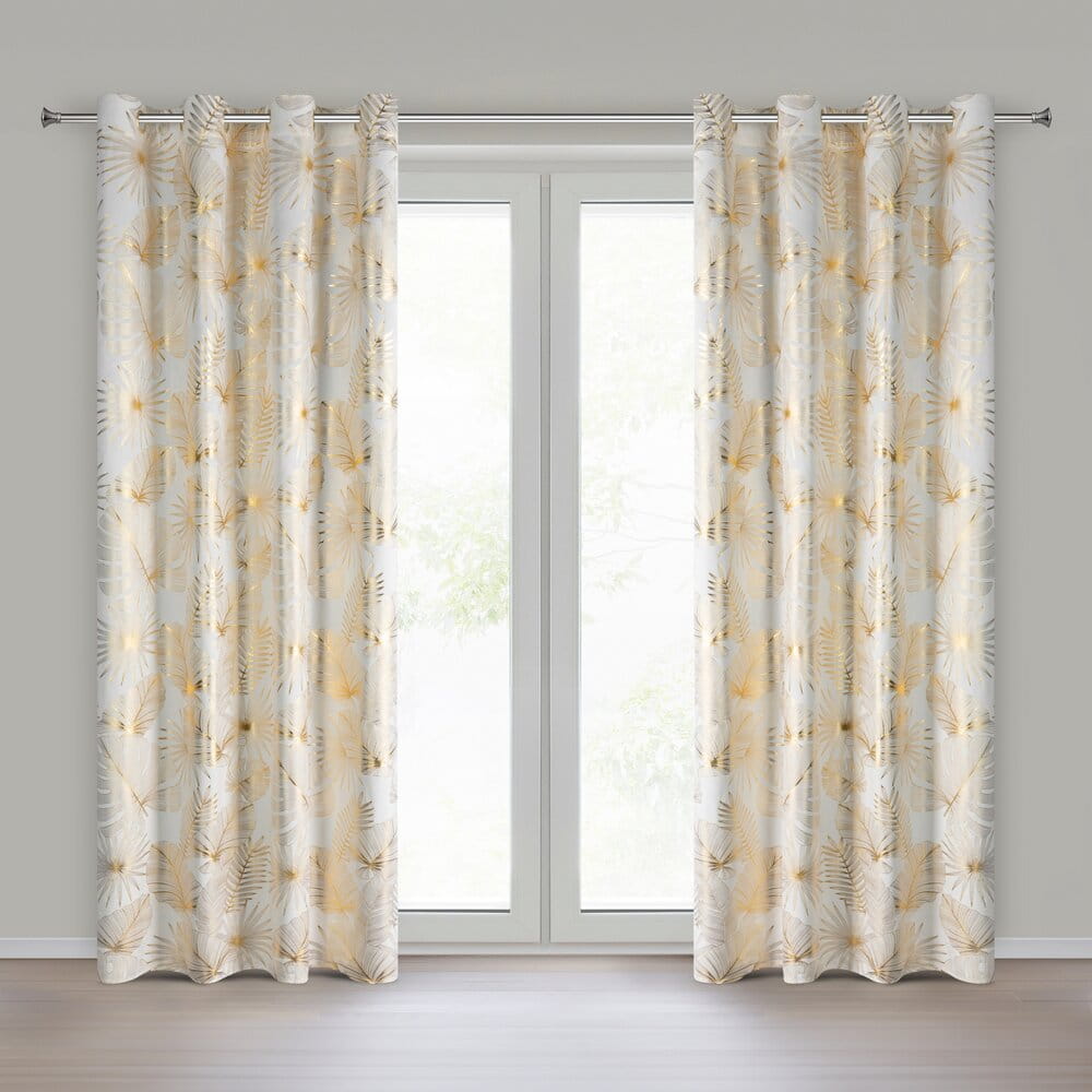 Zasłona gotowa welwetowa z błyszczącym nadrukiem szerokość: 140 cm, długość: 250 cm, kolor: biały, Gramatura: 200 GSM, Skład: 100% poliester