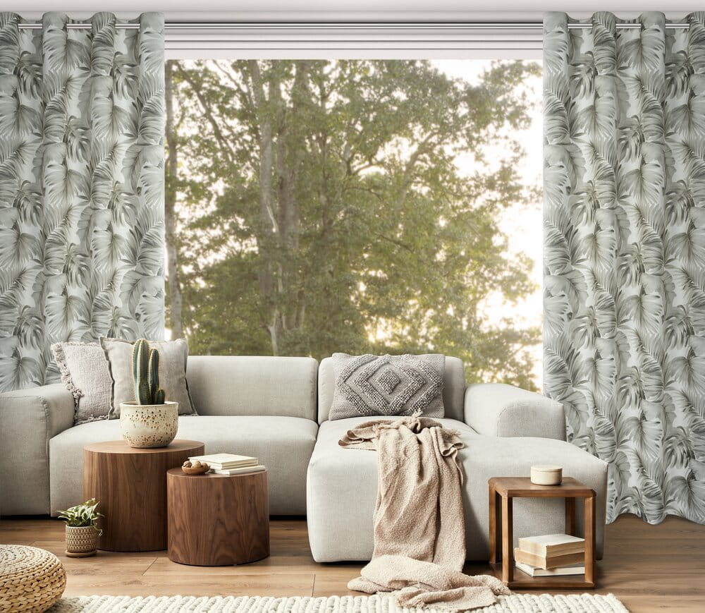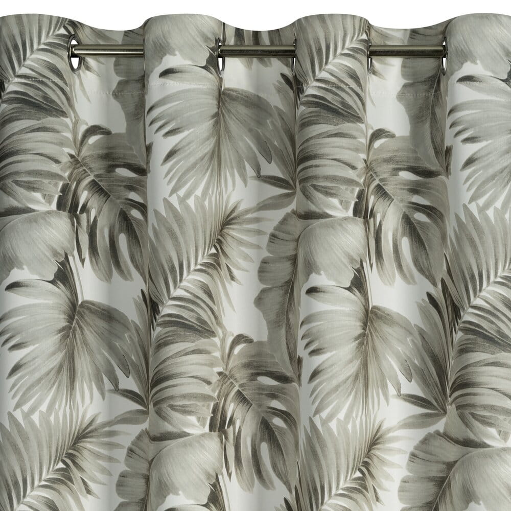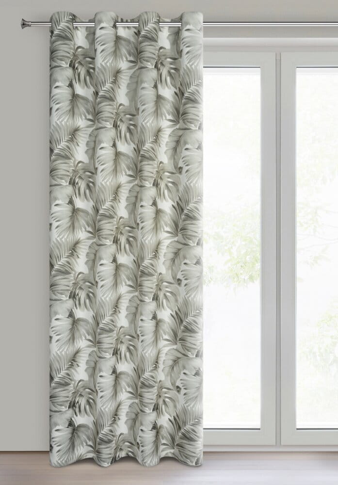 Zasłona gotowa zaciemniająca z motywem liści szerokość: 140 cm, długość: 250 cm, kolor: biały, Gramatura: 190 GSM, Skład: 100% poliester