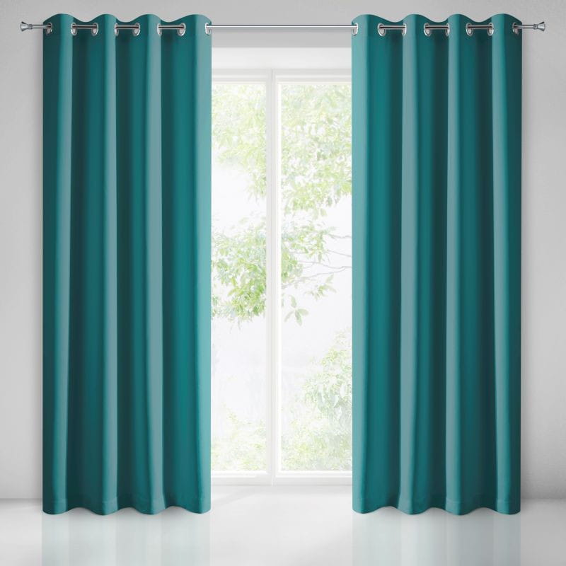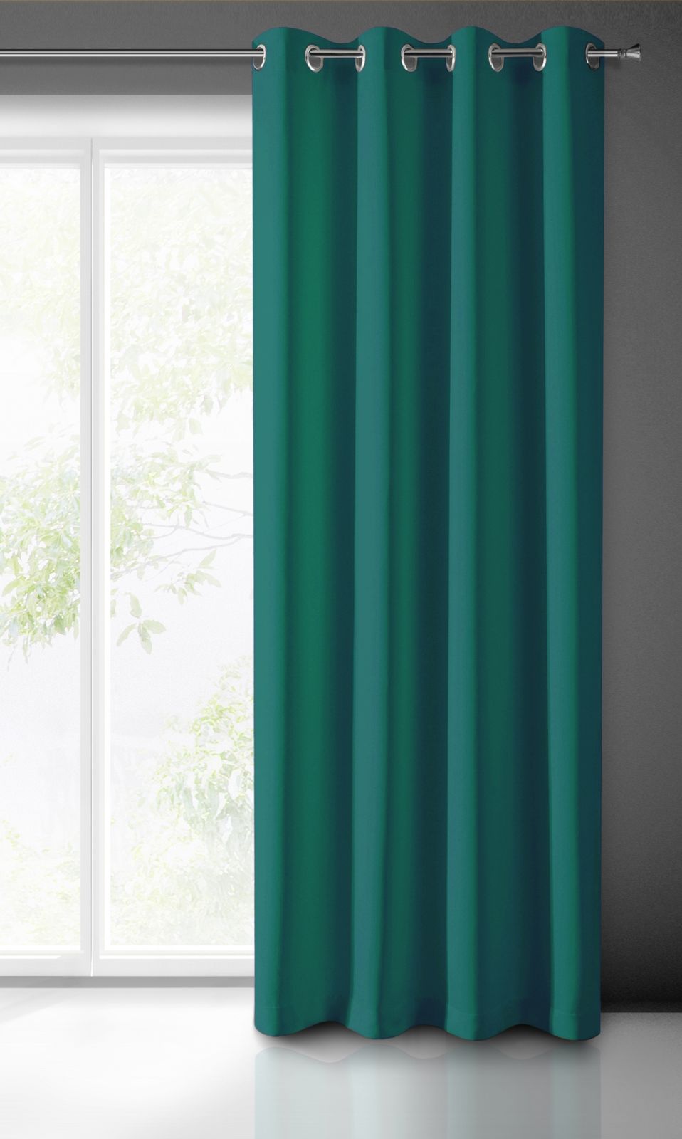 Elegancka zasłona jednokolorowa z tkaniny o wysokim stopniu zaciemnienia. Mięsisty, matowy materiał bez dekoroacji jest uniwersalnym elementem wystroju wnętrza. , szerokość: 135 cm, długość: 250 cm, kolor CIEMNY TURKUSOWY. Gramatura: 210 GSM. Skład: 100% poliester