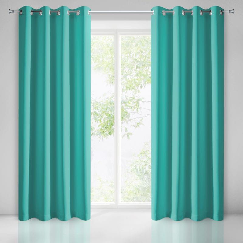 Elegancka zasłona jednokolorowa z tkaniny o wysokim stopniu zaciemnienia. Mięsisty, matowy materiał bez dekoroacji jest uniwersalnym elementem wystroju wnętrza. , szerokość: 135 cm, długość: 250 cm, kolor TURKUSOWY. Gramatura: 210 GSM. Skład: 100% poliester