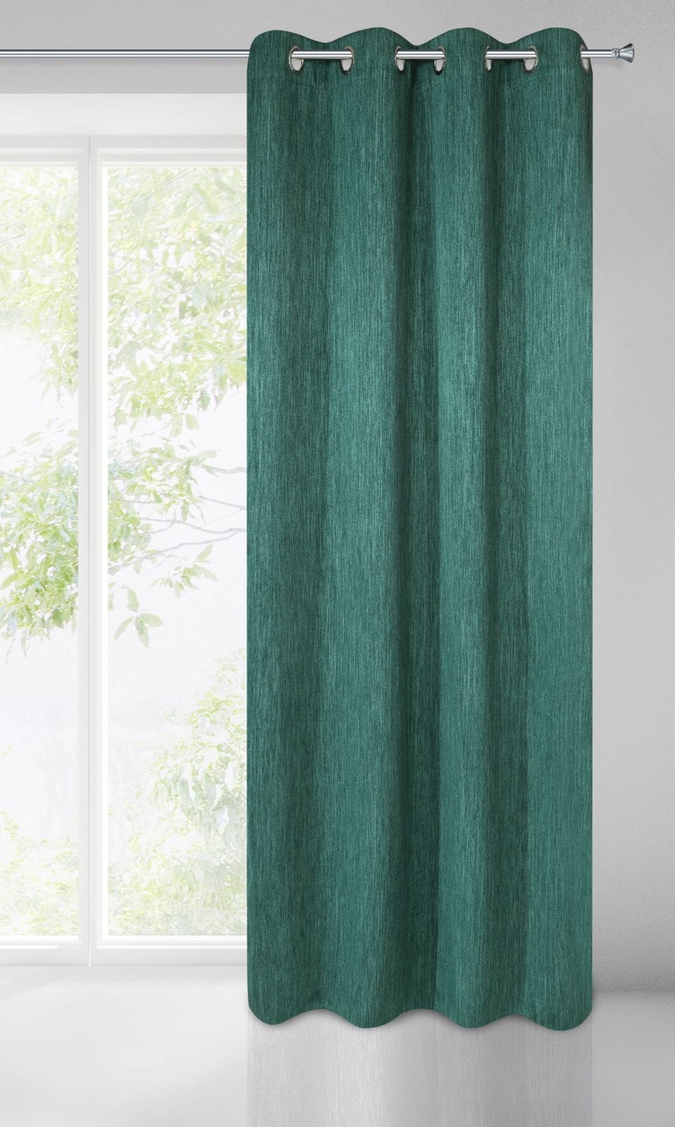 Zasłona zaciemniająca jednokolorowa strukturalna typu blackout , szerokość: 135 cm, długość: 250 cm, kolor CIEMNY ZIELONY. Gramatura: 250 GSM. Skład: 100% poliester