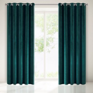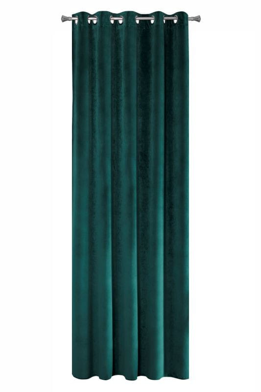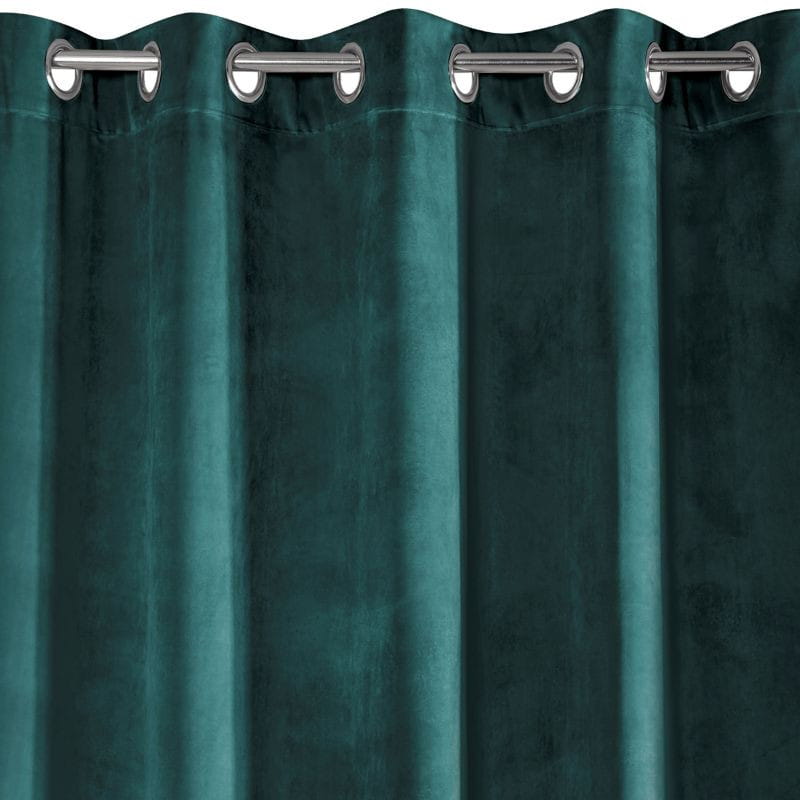 Gładka, jednokolorowa zasłona z miękkiego welwetu o charakterystycznym dla aksamitu połysku. Aż 10 szerokich przelotek umożliwia proste upięcie dekoracji okna. , szerokość: 140 cm, długość: 250 cm, kolor CIEMNY TURKUSOWY. Gramatura: 290 GSM. Skład: 100% poliester