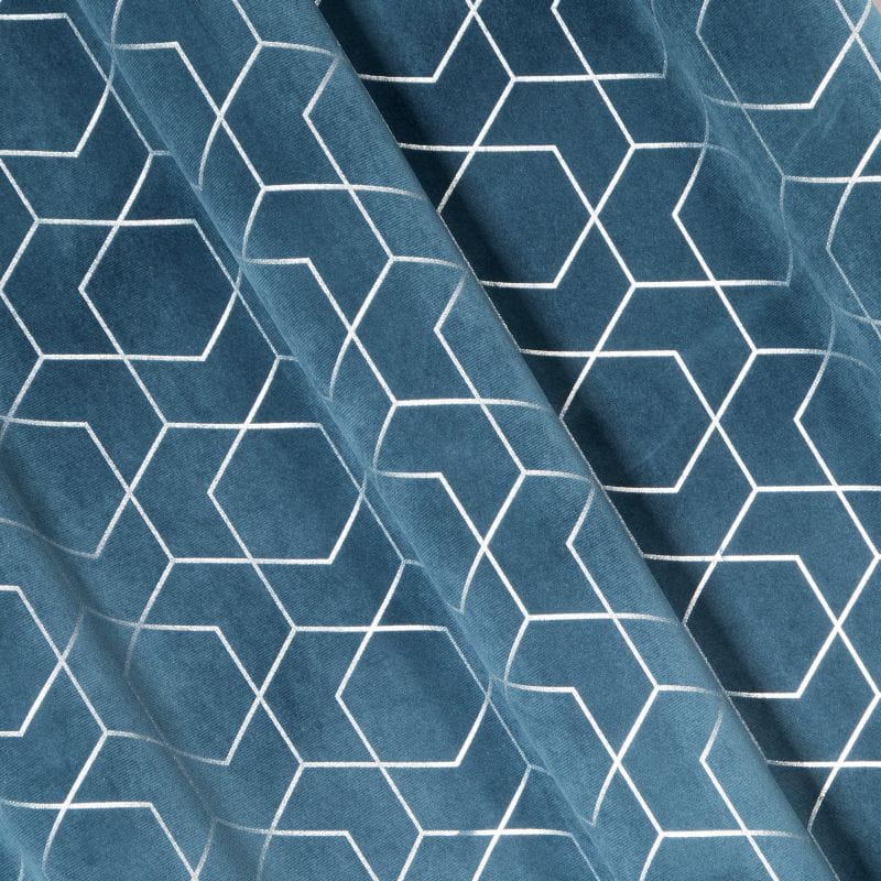 Nowoczesna, wręcz futurystyczna zasłona zdobiona gęsto wplecioną srebrną nicią świetnie odbija światło. Lekka tkanina łatwo się układa w miękkie, lśniące fale. ,