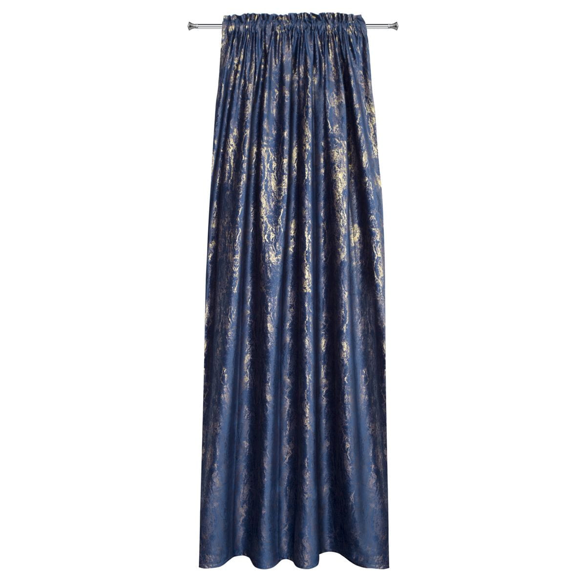 Zasłona welwetowa ze złotym nadrukiem , szerokość: 140 cm, długość: 270 cm, kolor GRANATOWY. Gramatura: 220 GSM. Skład: 100% poliester