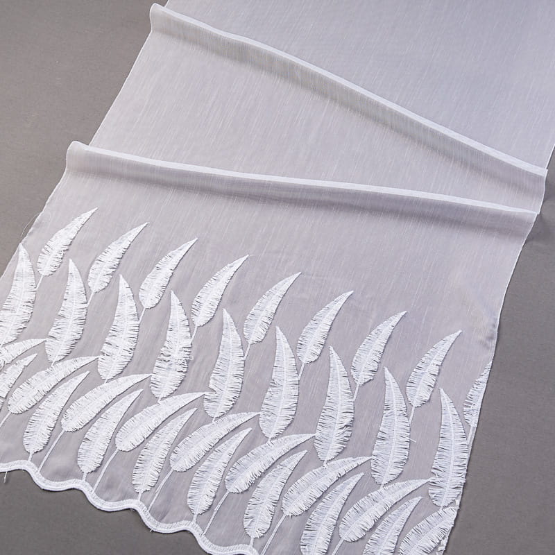 Firana haftowana „Piórka” 300 cm – naturalny efekt, subtelny haft i elegancki połysk
